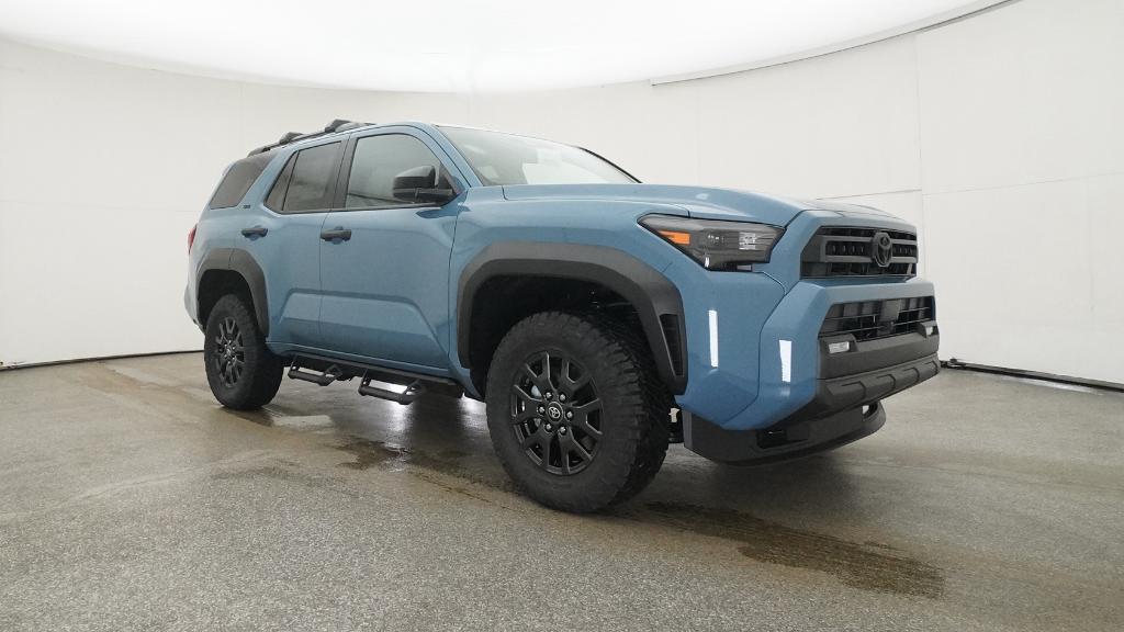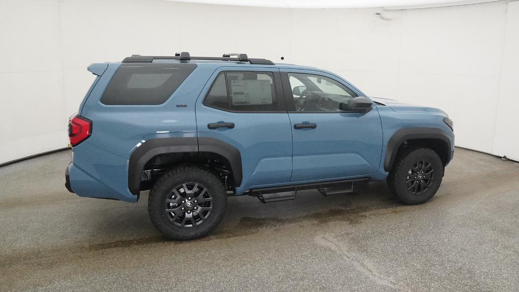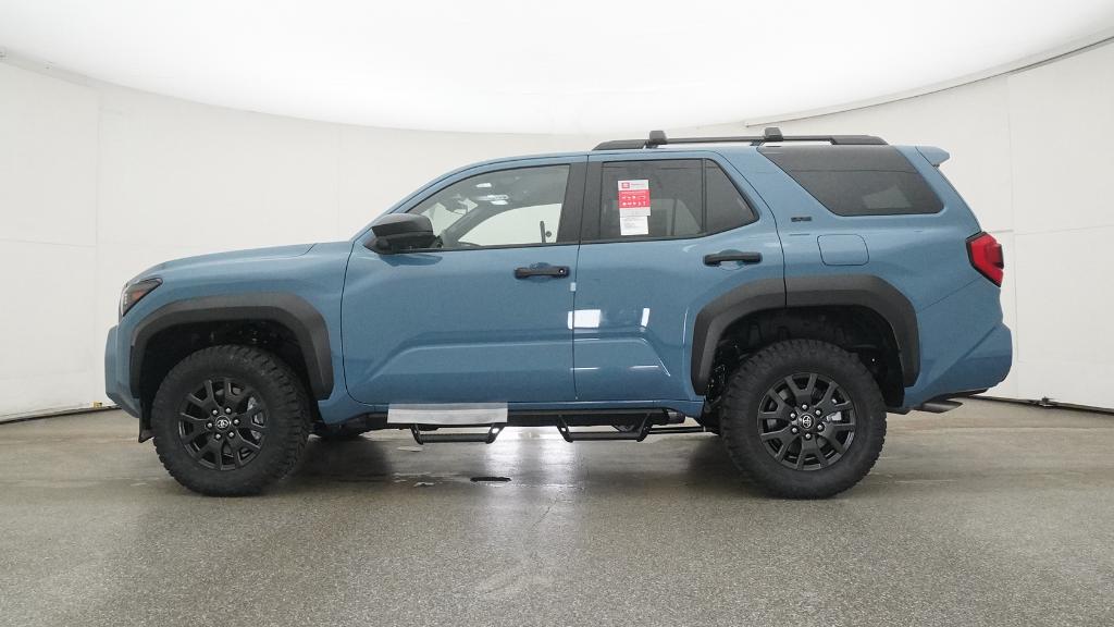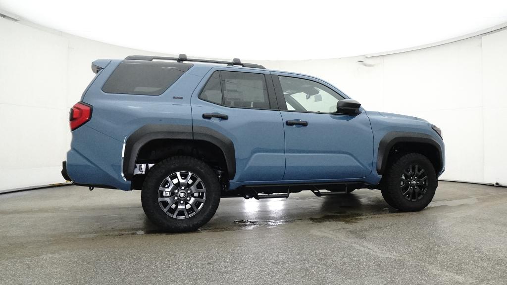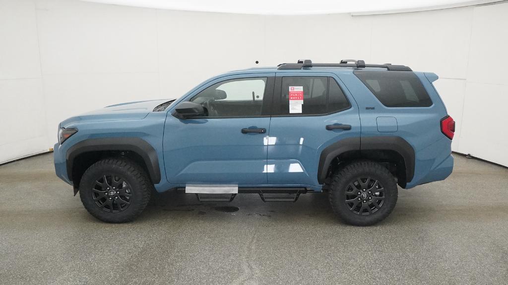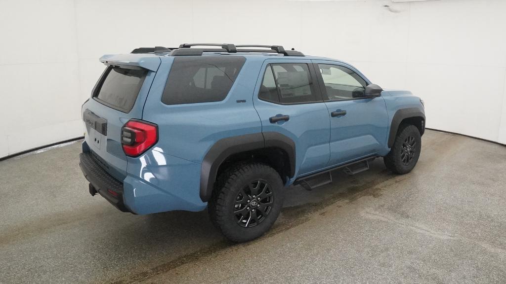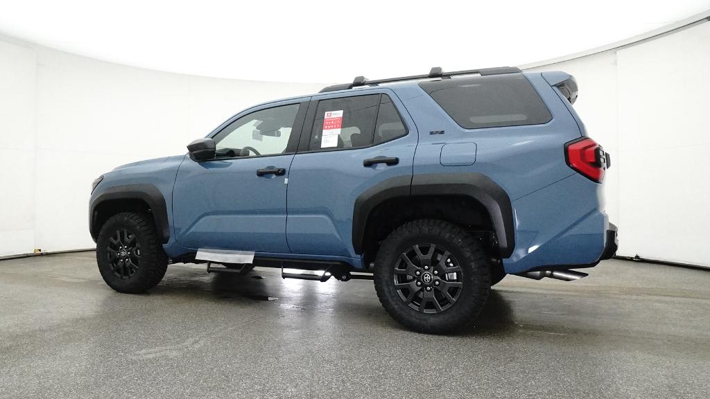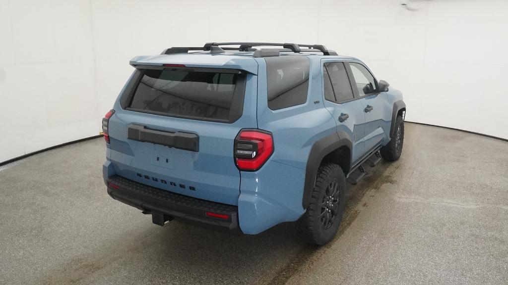 - Black horizontal-bar grille, mirror caps, door handles, and overfenders; color-keyed rear spoiler; black "SR5" and "4RUNNER" badges