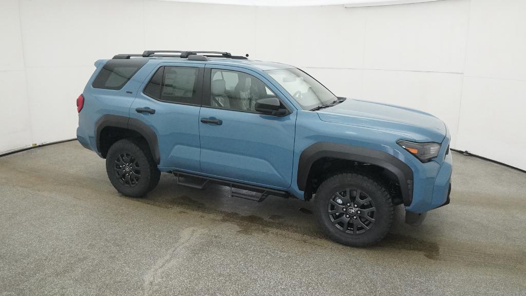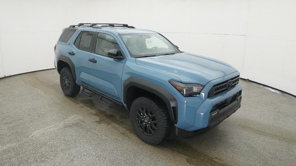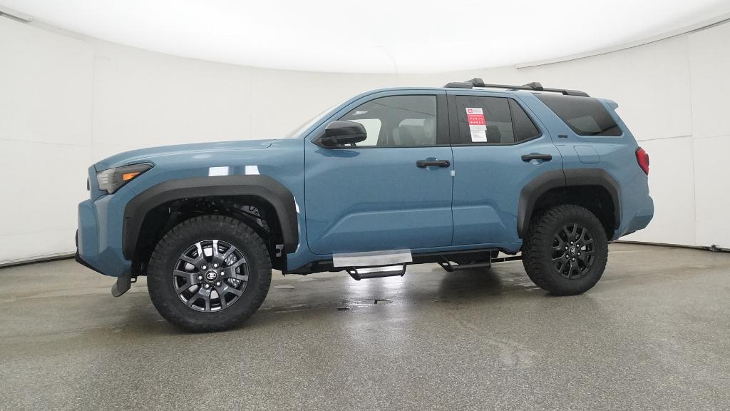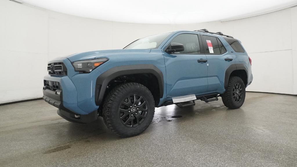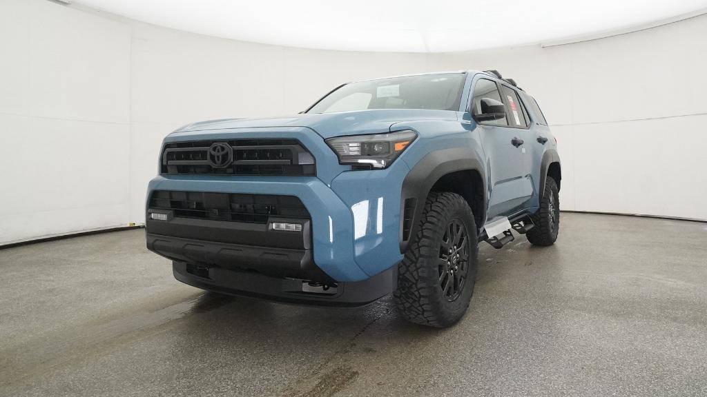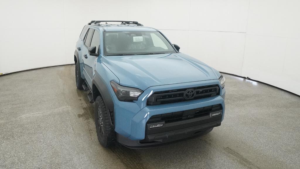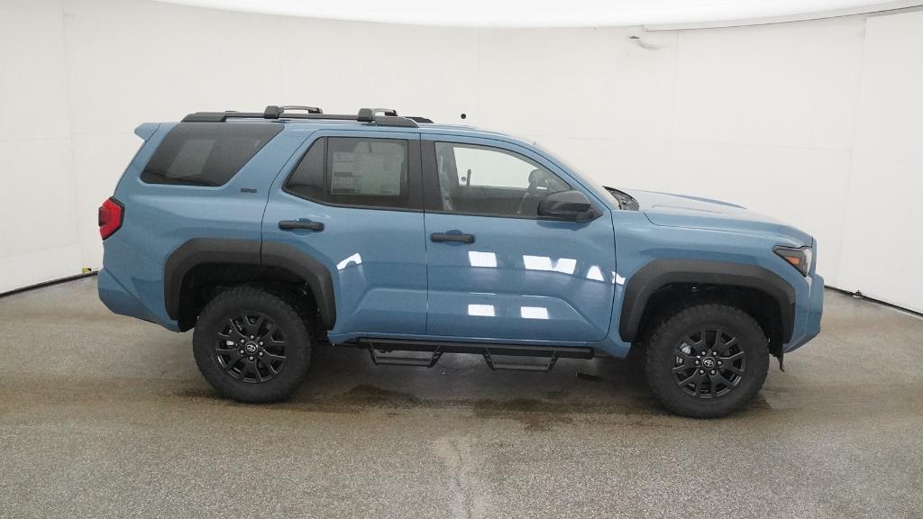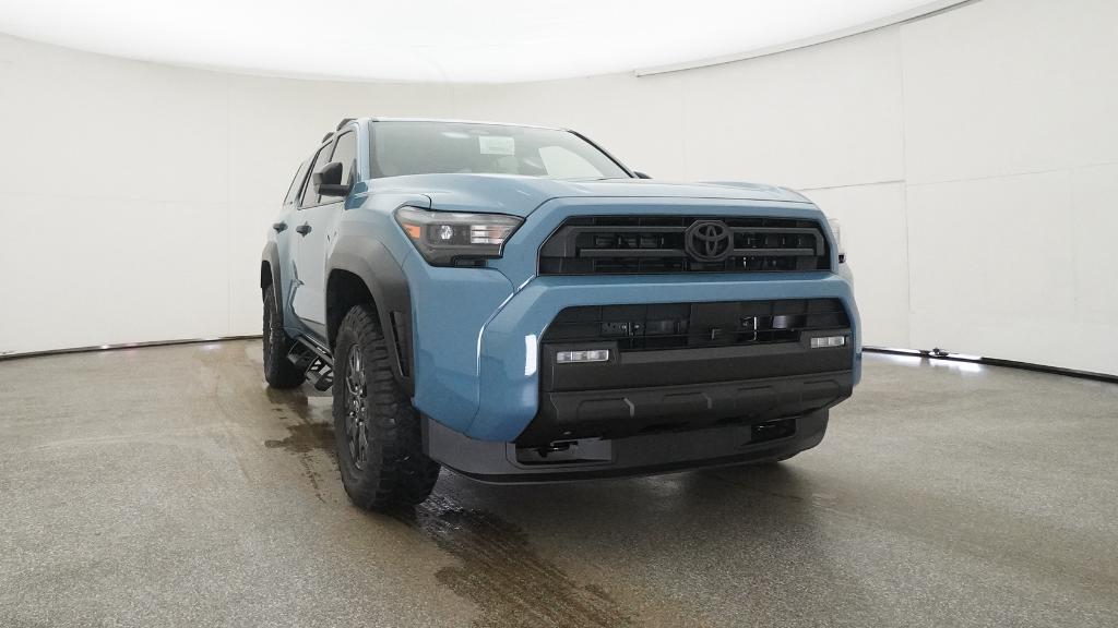 - Black horizontal-bar grille, mirror caps, door handles, and overfenders; color-keyed rear spoiler; black "SR5" and "4RUNNER" badges