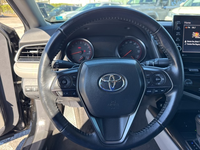 Midnight Black 2021 Toyota Camry XSE FWD 8-Speed Automatic 2.5L I4 DOHC 16V BACKUP CAMERA, BLUETOOTH, LEATHER, MOONROOF, POWER PACKAGE, Ash Leather, 4-Wheel Disc Brakes, ABS brakes, Dual front impact airbags, Dual front side impact airbags, Emergency communication system: Safety Connect with 1-year trial, Front anti-roll bar, Knee airbag, Low tire pressure warning, Occupant sensing airbag, Overhead airbag, Panoramic Glass Roof, Rear anti-roll bar, Rear side impact airbag.