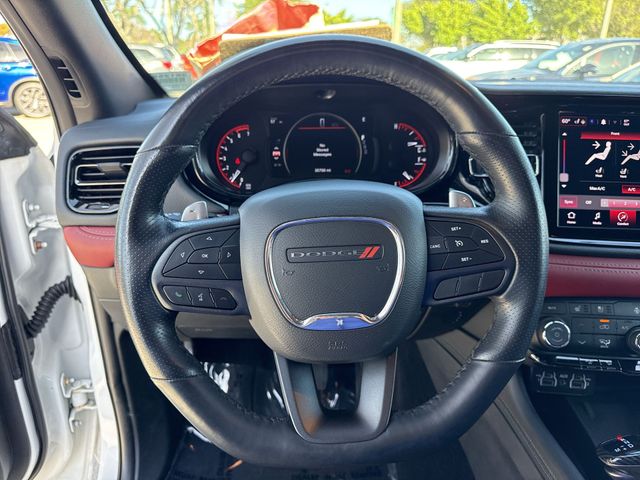 2022 Dodge Durango R/T White Knuckle Clearcoat Recent Arrival! !!!*** HURRY ***!!!, *!*!*! DON'T MISS OUT !*!*!*, ** BEST COLOR COMBINATION **, 2nd Row Fold/Tumble Captain Chairs, 2nd Row Mini Console w/Cupholders, 2nd Row Seat Mounted Inboard Armrests, 3.09 Rear Axle Ratio, 3rd row seats: split-bench, 4-Wheel Disc Brakes, 6-Passenger Seating, 7 & 4 Pin Wiring Harness, 9 Speakers, ABS brakes, Air Conditioning, Alloy wheels, AM/FM radio: SiriusXM w/360L, Anti-whiplash front head restraints, Apple CarPlay/Android Auto, Audio memory, Auto High-beam Headlights, Auto-dimming door mirrors, Auto-dimming Rear-View mirror, Auto-leveling suspension, Automatic temperature control, Blacktop Package, Brake assist, Bumpers: body-color, Class IV Receiver Hitch, Compass, Delay-off headlights, Driver door bin, Driver vanity mirror, Dual front impact airbags, Dual front side impact airbags, Electronic Stability Control, Emergency communication system: SiriusXM Guardian, Four wheel independent suspension, Front anti-roll bar, Front Bucket Seats, Front Center Armrest w/Storage, Front dual zone A/C, Front fog lights, Front reading lights, Fully automatic headlights, Garage door transmitter, Gloss Black Badges, Gloss Black Exterior Mirrors, Heated door mirrors, Heated front seats, Heated rear seats, Heated steering wheel, Heavy-Duty Engine Cooling, Illuminated entry, Knee airbag, Leather steering wheel, Leather Suede Bucket Seats, Low tire pressure warning, Memory seat, Mini Console 3rd Row Floor Mat, Navigation system: TomTom, Occupant sensing airbag, Outside temperature display, Overhead airbag, Overhead console, Panic alarm, ParkView Rear Back-Up Camera, Passenger door bin, Passenger vanity mirror, Power door mirrors, Power driver seat, Power Liftgate, Power passenger seat, Power steering, Power windows, Quick Order Package 22S R/T, Radio data system, Radio: Uconnect 5 Nav w/10.1" Display, Rain sensing wipers, Rear air conditioning, Rear anti-roll bar, Rear Load Leveling Suspension, Rear reading lights, Rear seat center armrest, Rear window defroster, Rear window wiper, Remote keyless entry, Satin Black Dodge Tail Lamp Badge, Security system, Speed control, Speed-sensing steering, Speed-Sensitive Wipers, Split folding rear seat, Spoiler, Steering wheel mounted audio controls, Tachometer, Telescoping steering wheel, Tilt steering wheel, Traction control, Trailer Brake Control, Trailer Tow Group IV, Trip computer, Turn signal indicator mirrors, Variably intermittent wipers, Voltmeter, Wheels: 20" x 8.0" Black Noise Aluminum, Wheels: 20" x 8.0" Fine Silver. Odometer is 17060 miles below market average!
