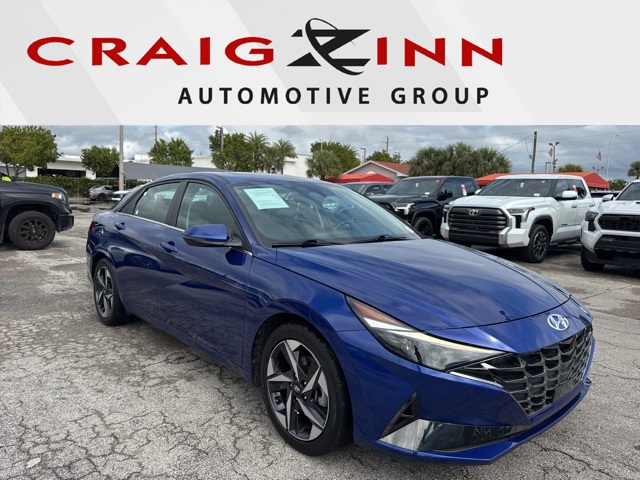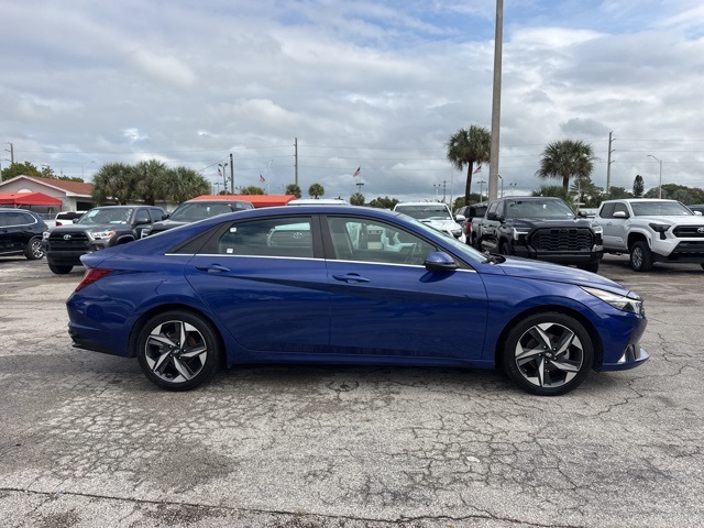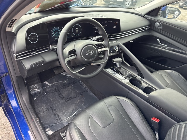 Intense Blue 2023 Hyundai Elantra Limited FWD CVT I4 BACKUP CAMERA, BLUETOOTH, LEATHER, MOONROOF, NAVIGATION, POWER PACKAGE, 4-Wheel Disc Brakes, ABS brakes, Dual front impact airbags, Dual front side impact airbags, Emergency communication system: Blue Link Connected Car Service (3-year complimentary subscription), Front anti-roll bar, Front wheel independent suspension, Low tire pressure warning, Occupant sensing airbag, Overhead airbag.