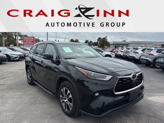 Midnight Black Metallic 2023 Toyota Highlander XLE FWD 8-Speed Automatic 2.4L I4 PDI Turbocharged DOHC 16V LEV3-SULEV30 265hp BACKUP CAMERA, BLUETOOTH, POWER PACKAGE, 4-Wheel Disc Brakes, ABS brakes, Dual front impact airbags, Dual front side impact airbags, Emergency communication system: Safety Connect (up to 10-year trial subscription), Front anti-roll bar, Knee airbag, Low tire pressure warning, Occupant sensing airbag, Overhead airbag, Power moonroof, Rear anti-roll bar.