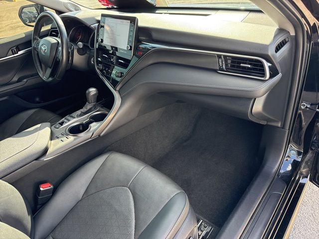 Midnight Black Metallic 2024 Toyota Camry XSE V6 FWD 8-Speed Automatic 3.5L V6 DOHC 24V BACKUP CAMERA, BLUETOOTH, LEATHER, MOONROOF, POWER PACKAGE, Black Leather, 4-Wheel Disc Brakes, ABS brakes, Dual front impact airbags, Dual front side impact airbags, Emergency communication system: Safety Connect (1-year trial), Front anti-roll bar, Knee airbag, Low tire pressure warning, Occupant sensing airbag, Overhead airbag, Rear anti-roll bar, Rear side impact airbag.