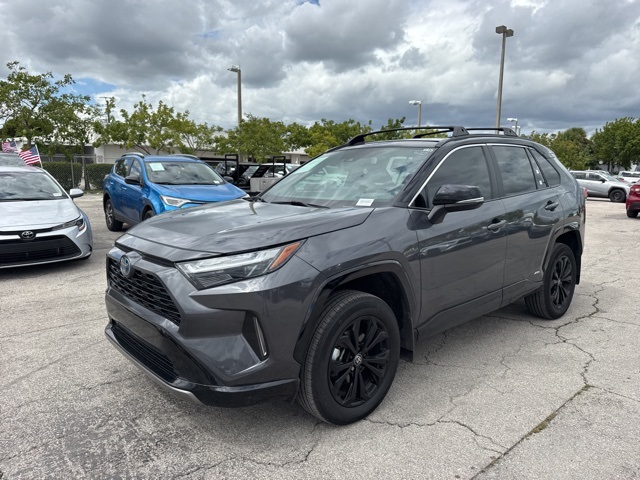 Grey 2024 Toyota RAV4 Hybrid XSE AWD eCVT 2.5L 4-Cylinder BACKUP CAMERA, BLUETOOTH, MOONROOF, POWER PACKAGE, 2.5L 4-Cylinder, 4-Wheel Disc Brakes, ABS brakes, Dual front impact airbags, Dual front side impact airbags, Emergency communication system: Safety Connect (1-year trial), Front anti-roll bar, Knee airbag, Low tire pressure warning, Occupant sensing airbag, Overhead airbag, Rear anti-roll bar, Smart Key System w/Push Button Start.