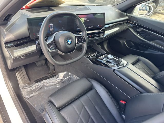 White 2025 BMW 5 Series 530i RWD 8-Speed Automatic 2.0L 4-Cylinder BACKUP CAMERA, BLUETOOTH, LEATHER, MOONROOF, NAVIGATION, POWER PACKAGE, Black w/Perforated and Quilted Veganza Upholstery, 4-Wheel Disc Brakes, ABS brakes, Connected Package Pro, Dual front impact airbags, Dual front side impact airbags, Emergency communication system: BMW Assist eCall, Front anti-roll bar, Low tire pressure warning, Navigation, Navigation System, Occupant sensing airbag, Overhead airbag, Power adjustable front head restraints, Power moonroof, Rear anti-roll bar.