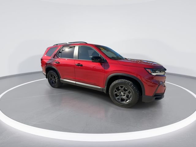 2025 Honda Pilot TrailSport Red Recent Arrival! !!!*** HURRY ***!!!, *!*!*! DON'T MISS OUT !*!*!*, ** BEST COLOR COMBINATION **, 3rd row seats: split-bench, 4-Wheel Disc Brakes, 4.167 Axle Ratio, 9 Speakers, ABS brakes, Adaptive Cruise Control: Adaptive Cruise Control (ACC) with Low-Speed Follow, Air Conditioning, Alloy wheels, AM/FM radio: SiriusXM, Apple CarPlay/Android Auto, Auto High-beam Headlights, Auto-dimming Rear-View mirror, Automatic temperature control, Blind Spot Information (BSI) System warning, Brake assist, Bumpers: body-color, Delay-off headlights, Driver door bin, Driver vanity mirror, Dual front impact airbags, Dual front side impact airbags, Durable Synthetic Leather Seat Trim, Electronic Stability Control, Emergency communication system: HondaLink Assist, Exterior Parking Camera Rear, Four wheel independent suspension, Front anti-roll bar, Front Bucket Seats, Front Center Armrest, Front dual zone A/C, Front fog lights, Front reading lights, Fully automatic headlights, Garage door transmitter: HomeLink, Heated door mirrors, Heated Front Bucket Seats, Heated front seats, Illuminated entry, Knee airbag, Lane departure: Lane Keeping Assist System (LKAS) active, Low tire pressure warning, Memory seat, Occupant sensing airbag, Outside temperature display, Overhead airbag, Overhead console, Panic alarm, Passenger door bin, Passenger vanity mirror, Power door mirrors, Power driver seat, Power Liftgate, Power moonroof, Power passenger seat, Power steering, Power windows, Radio data system, Radio: 245-Watt Audio System, Rear air conditioning, Rear anti-roll bar, Rear reading lights, Rear window defroster, Rear window wiper, Reclining 3rd row seat, Remote keyless entry, Security system, SiriusXM, Speed control, Speed-sensing steering, Speed-Sensitive Wipers, Split folding rear seat, Spoiler, Steering wheel mounted audio controls, Tachometer, Telescoping steering wheel, Tilt steering wheel, Traction control, Trip computer, Turn signal indicator mirrors, Variably intermittent wipers, Wheels: 18" Shark Gray with Black Lug Nuts. CARFAX One-Owner. Clean CARFAX.