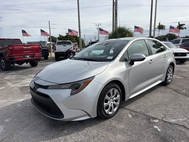Classic Silver 2025 Toyota Corolla LE FWD CVT 2.0L I4 DOHC 16V BACKUP CAMERA, BLUETOOTH, POWER PACKAGE, 4-Wheel Disc Brakes, ABS brakes, Dual front impact airbags, Dual front side impact airbags, Emergency communication system: Safety Connect (up to 10-year trial subscription), Front anti-roll bar, Front wheel independent suspension, Knee airbag, Low tire pressure warning, Occupant sensing airbag, Overhead airbag, Rear anti-roll bar, Rear side impact airbag.
