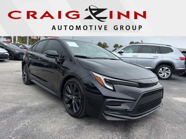 Midnight Black Metallic 2025 Toyota Corolla SE FWD CVT 2.0L I4 DOHC 16V BACKUP CAMERA, BLUETOOTH, POWER PACKAGE, 4-Wheel Disc Brakes, ABS brakes, Dual front impact airbags, Dual front side impact airbags, Emergency communication system: Safety Connect (up to 10-year trial subscription), Front anti-roll bar, Knee airbag, Low tire pressure warning, Occupant sensing airbag, Overhead airbag, Rear anti-roll bar, Rear side impact airbag.