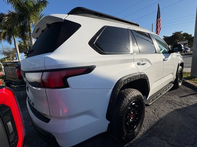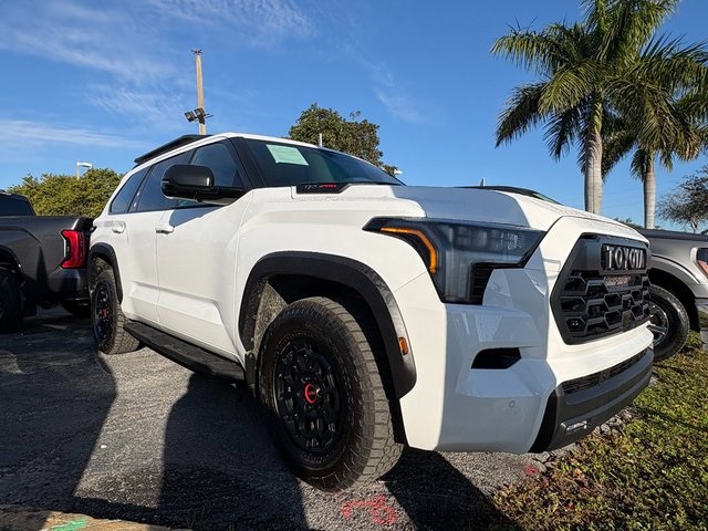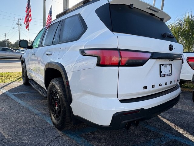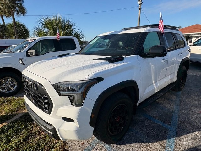 Ice 2025 Toyota Sequoia TRD Pro 4WD 10-Speed Automatic V6 Hybrid BACKUP CAMERA, BLUETOOTH, LEATHER, MOONROOF, NAVIGATION, POWER PACKAGE, V6 Hybrid, 10-Speed Automatic, 4WD, 4-Wheel Disc Brakes, ABS brakes, Anti-whiplash front head restraints, Dual front impact airbags, Dual front side impact airbags, Emergency communication system: Safety Connect (10-year trial), Front anti-roll bar, Front wheel independent suspension, Knee airbag, Low tire pressure warning, Navigation system: Drive Connect (1 year trial) includes Cloud Navigation with real time traffic and Google POI, Occupant sensing airbag, Overhead airbag, Power Liftgate, Power moonroof, Power Tilt/Slide Panoramic Roof w/Power Sunshade, TRD Pro Package.